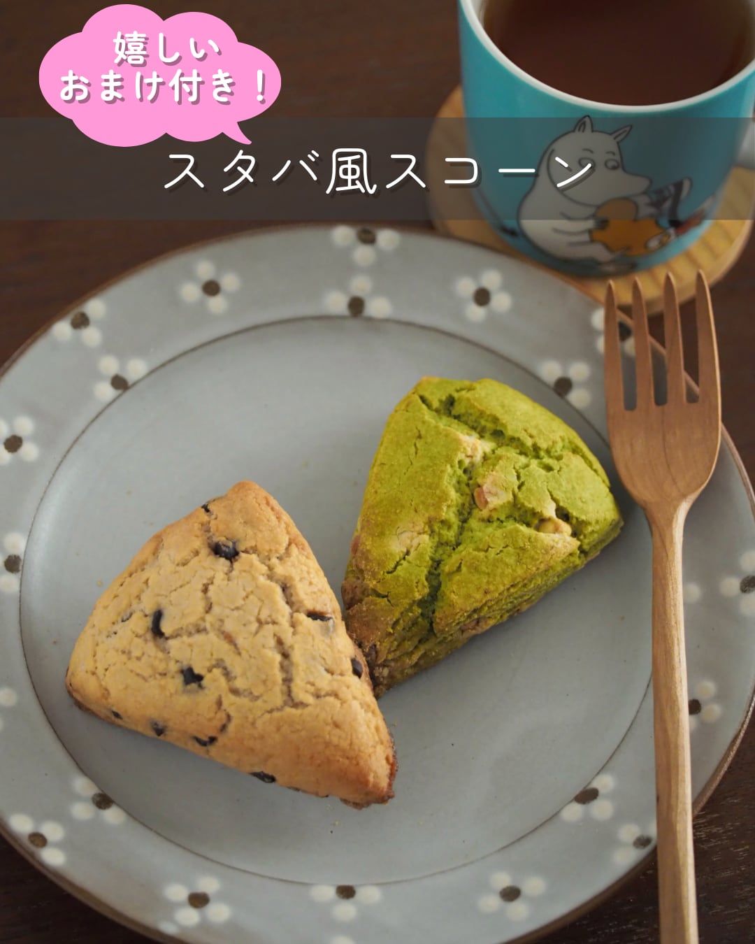 このお試しモニター便Aセットでは、米粉パン14個に加えておまけのスタバ風スコーン2種類(生米から作ったチョコチップ入りスコーン&ホワイトチョコ入り抹茶米粉スコーン1つずつ)もついています。